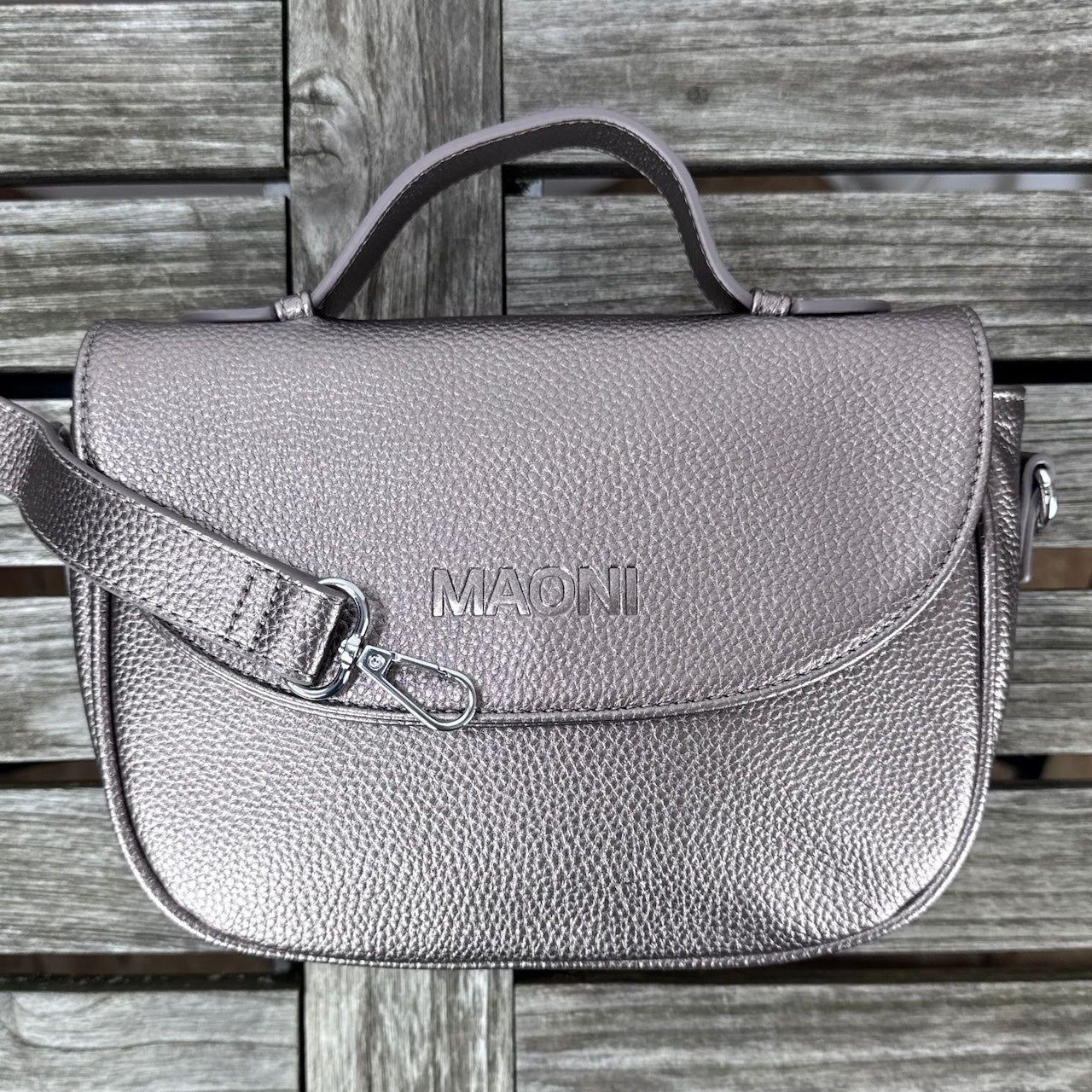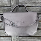 Umhängetasche + schmaler Taschengurt aus Kunstleder mit silberfarbener Hardware
