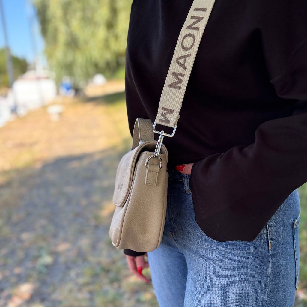 Dank des auswechselbaren Taschengurts kannst du die Tasche jederzeit deinem Outfit anpassen. Die gezeigten breiten Stoffgurte sind nicht Bestandteil des Angebots und können separat in unserem Shop erworben werden.