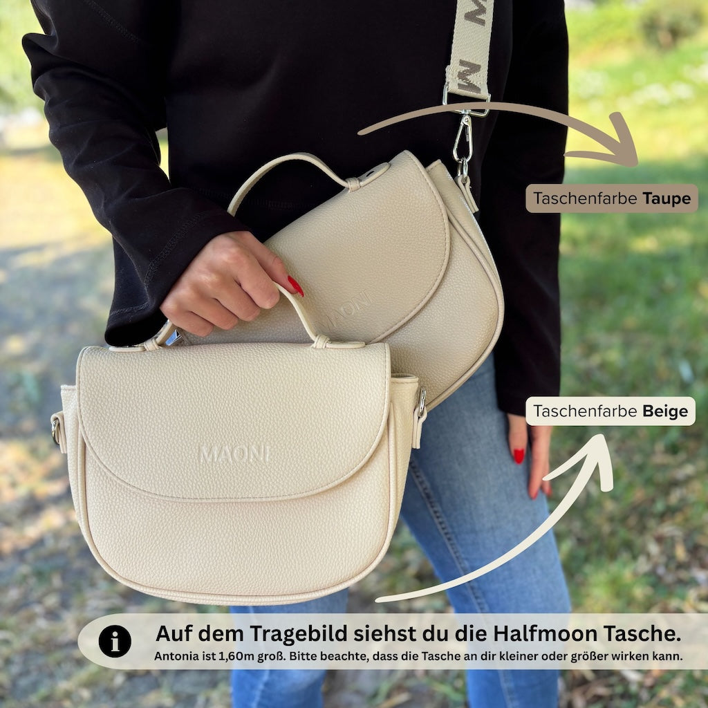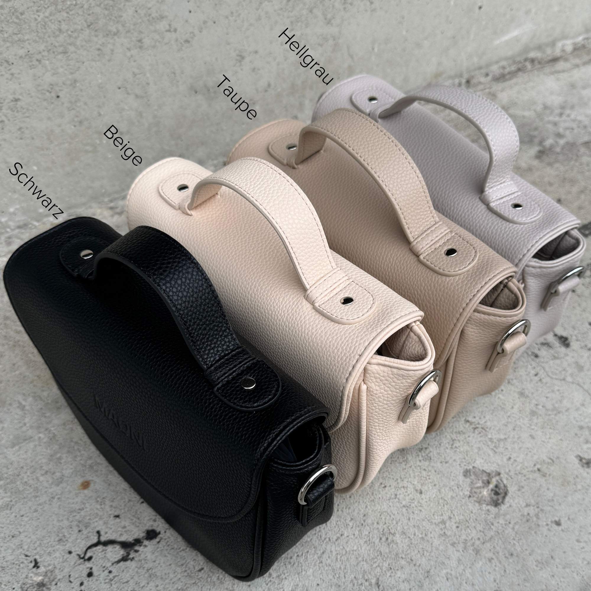 Bitte beachte, dass das Model 1.60m groß ist und die Tasche an dir gegebenenfalls kleiner oder größer wirken kann. Durch die Lichtverhältnisse und Bildschirmeinstellungen kann die Farbe leicht abweichen.