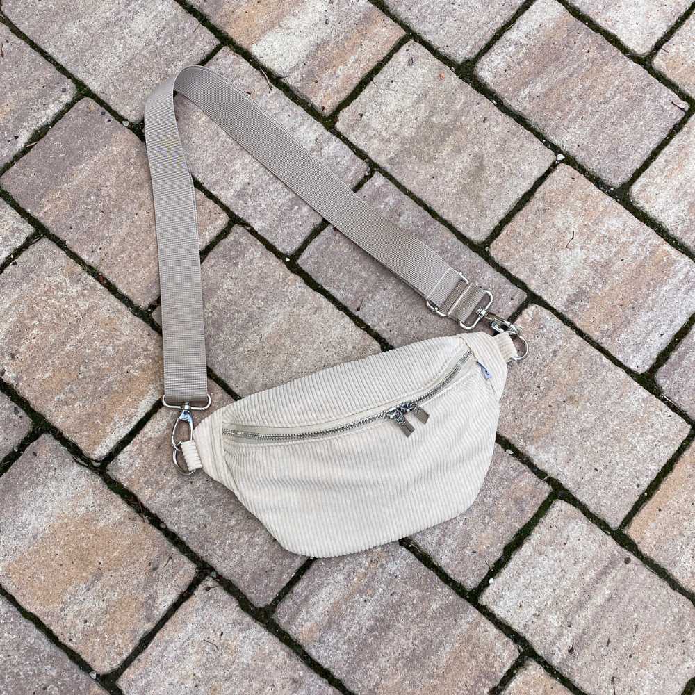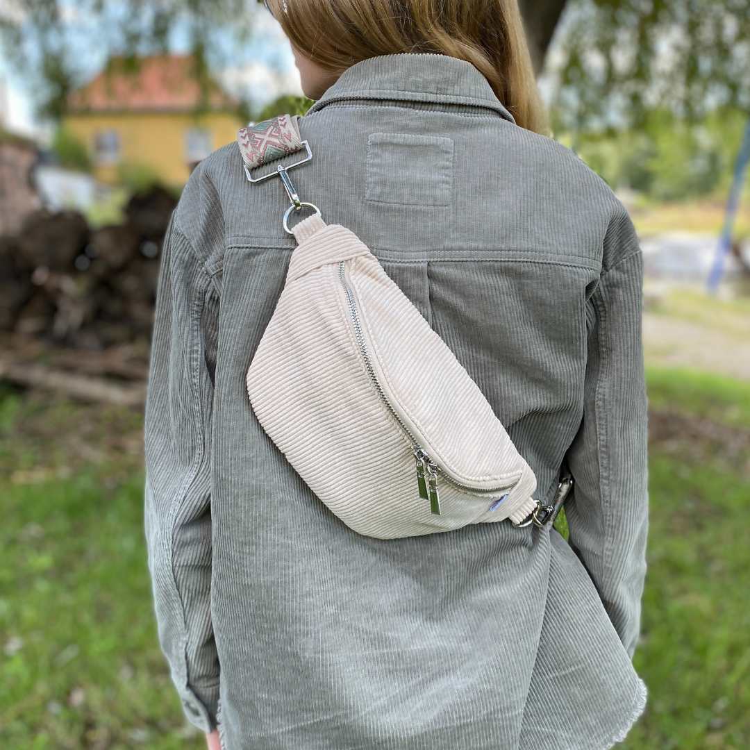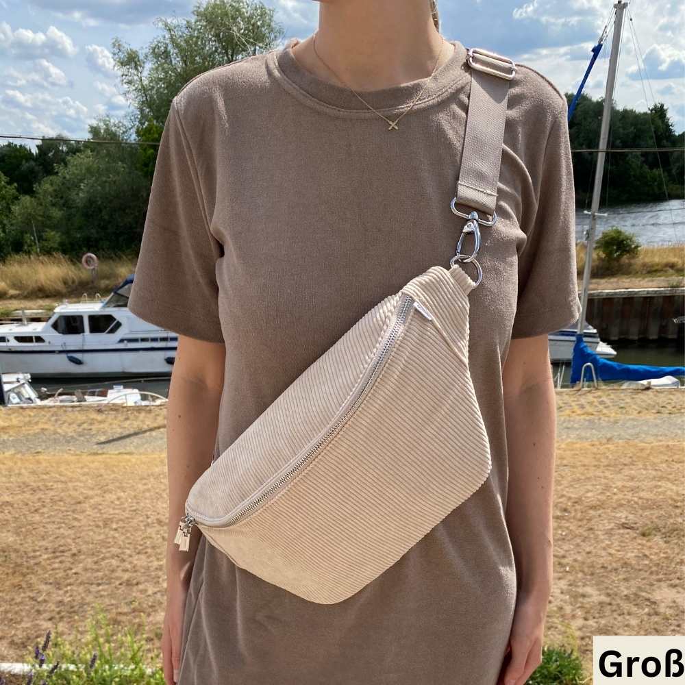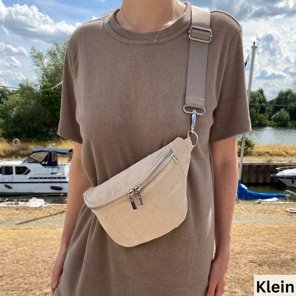 Unsere Bauchtasche aus Cord ist in zwei verschiedenen Größe erhältlich.