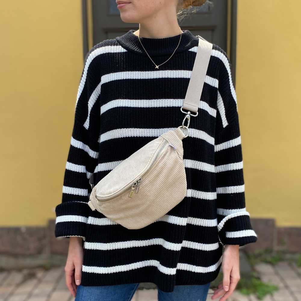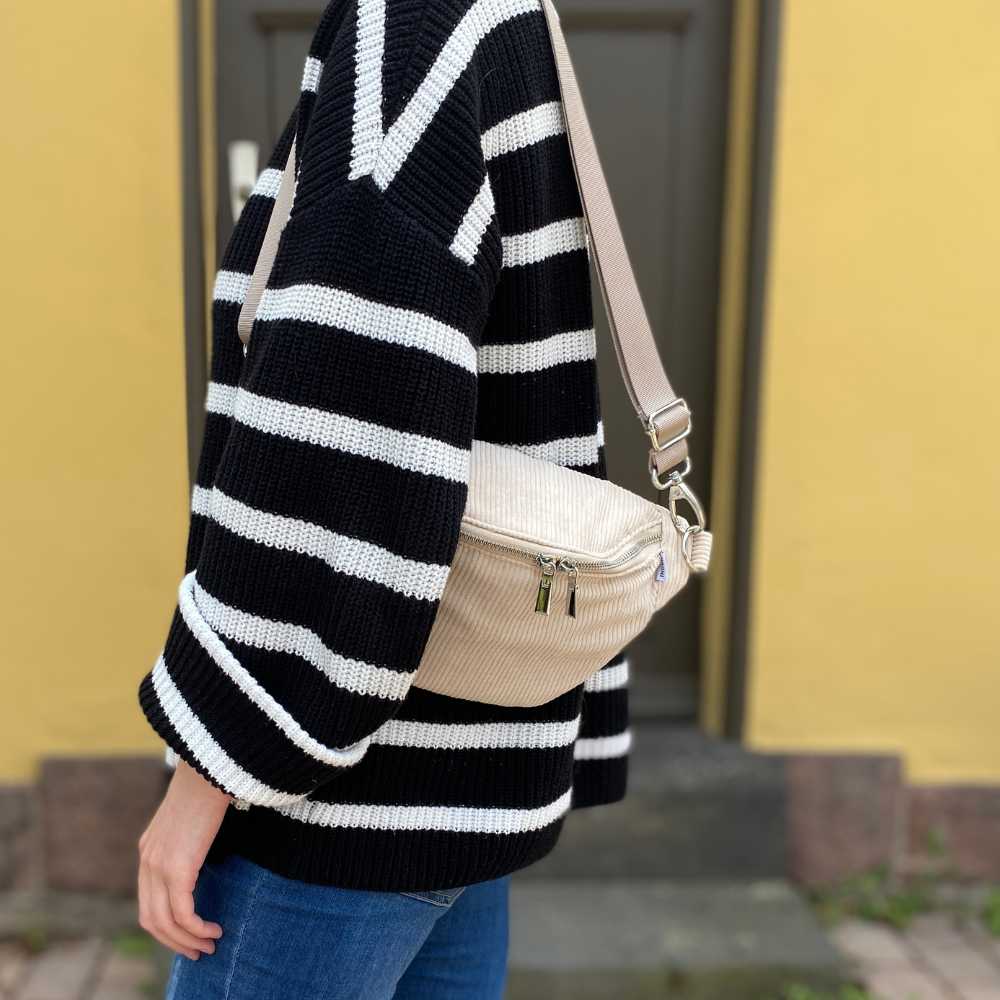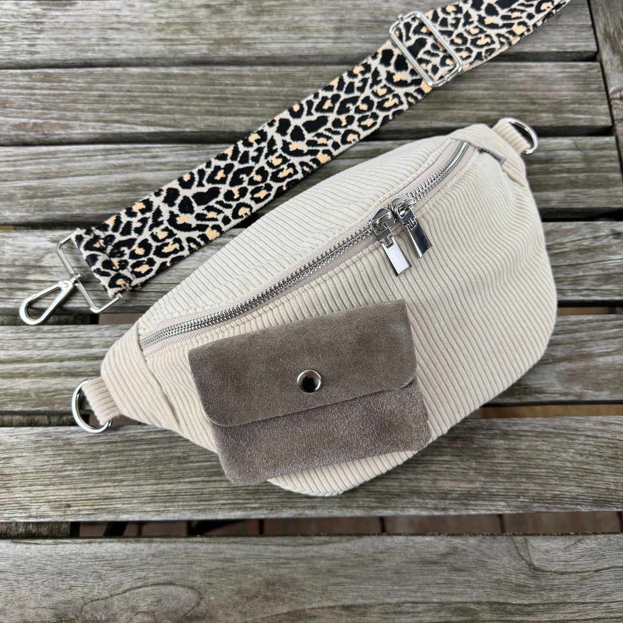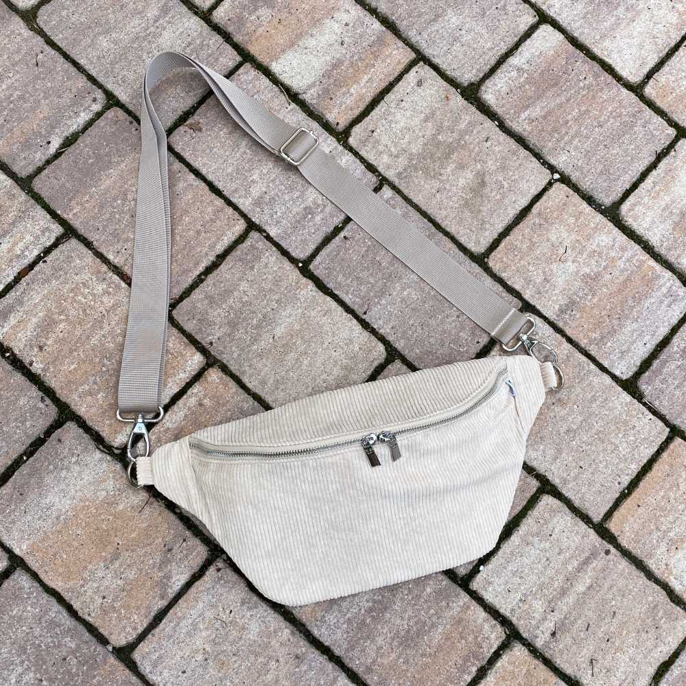Unsere Bauchtasche aus Cord ist in zwei verschiedenen Größe erhältlich.