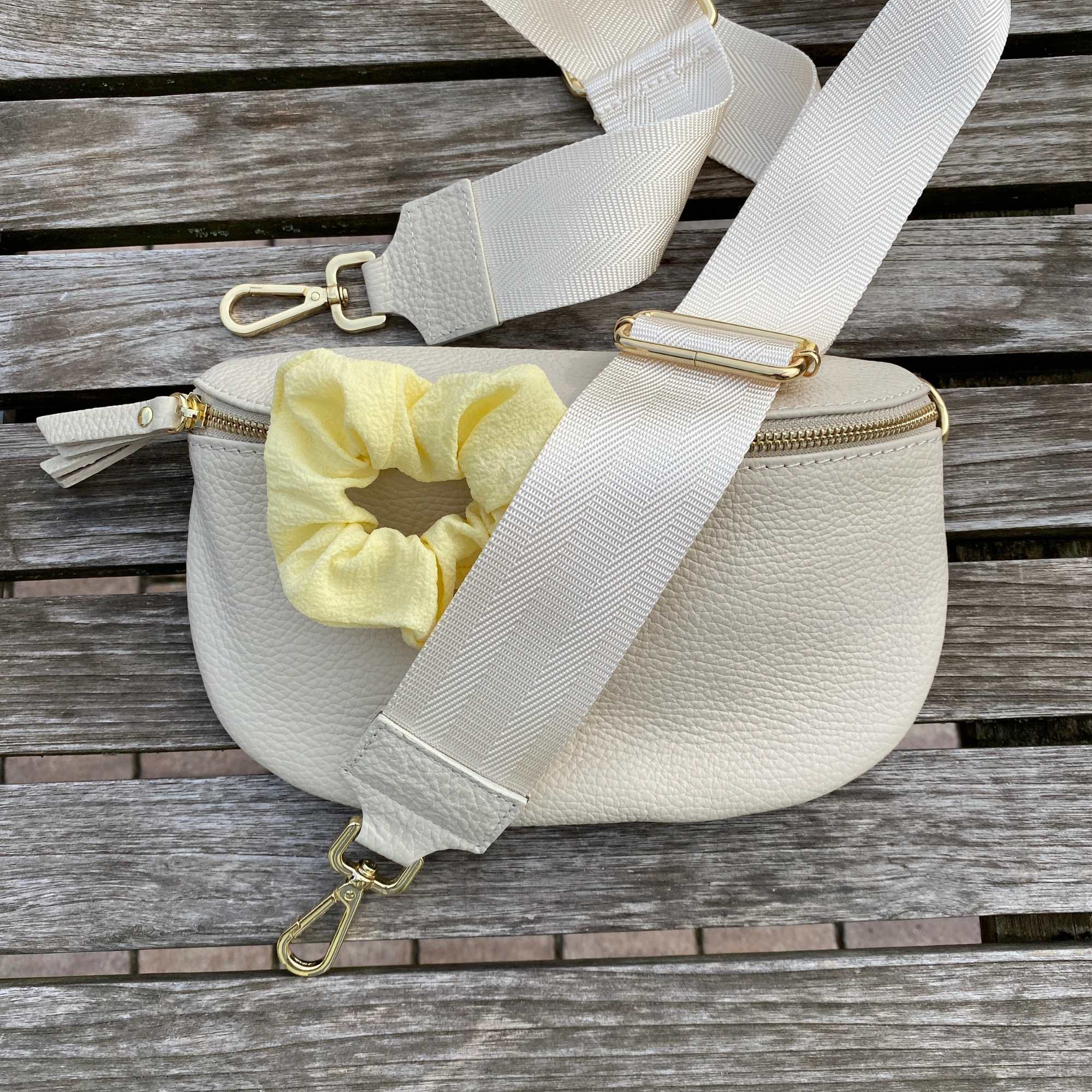 chouchou jaune : sac banane de taille moyenne en beige avec fermeture dorée
