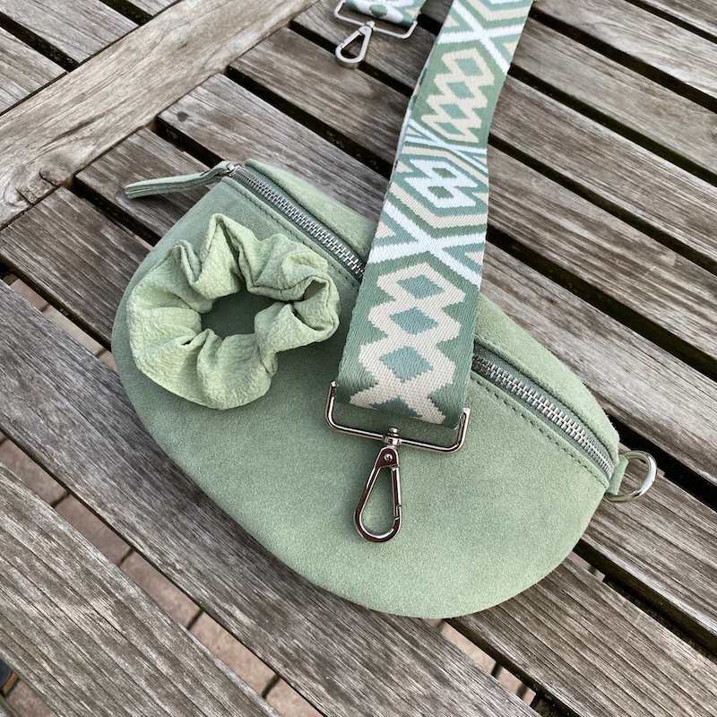 chouchou vert : petit sac banane en vert avec fermeture dorée