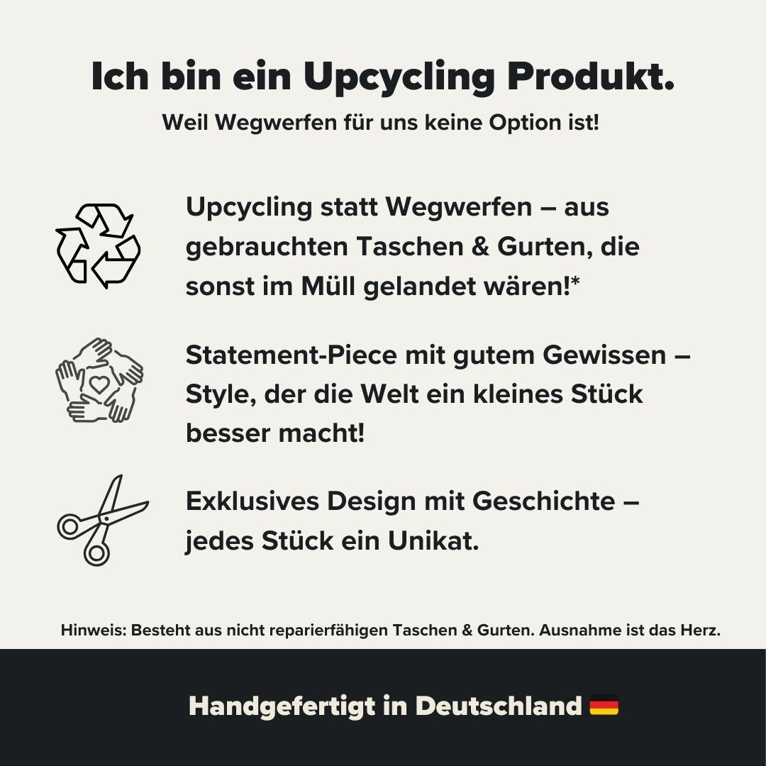 Aus nicht reparierfähigen Taschen & Gurten – einfach an den Gurt hängen & Outfit aufwerten.
