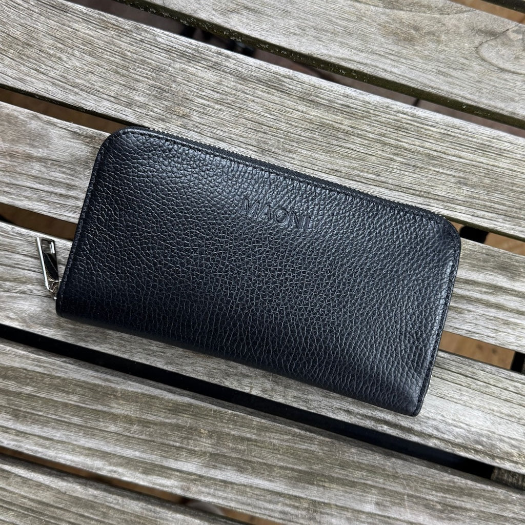 La livraison comprend un grand porte-monnaie en cuir. Le porte-monnaie dispose de 8 porte-cartes, de 5 compartiments pour les billets ou les reçus et d'un grand compartiment pour la monnaie.
