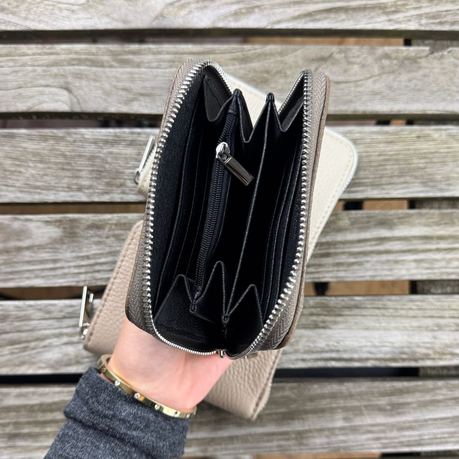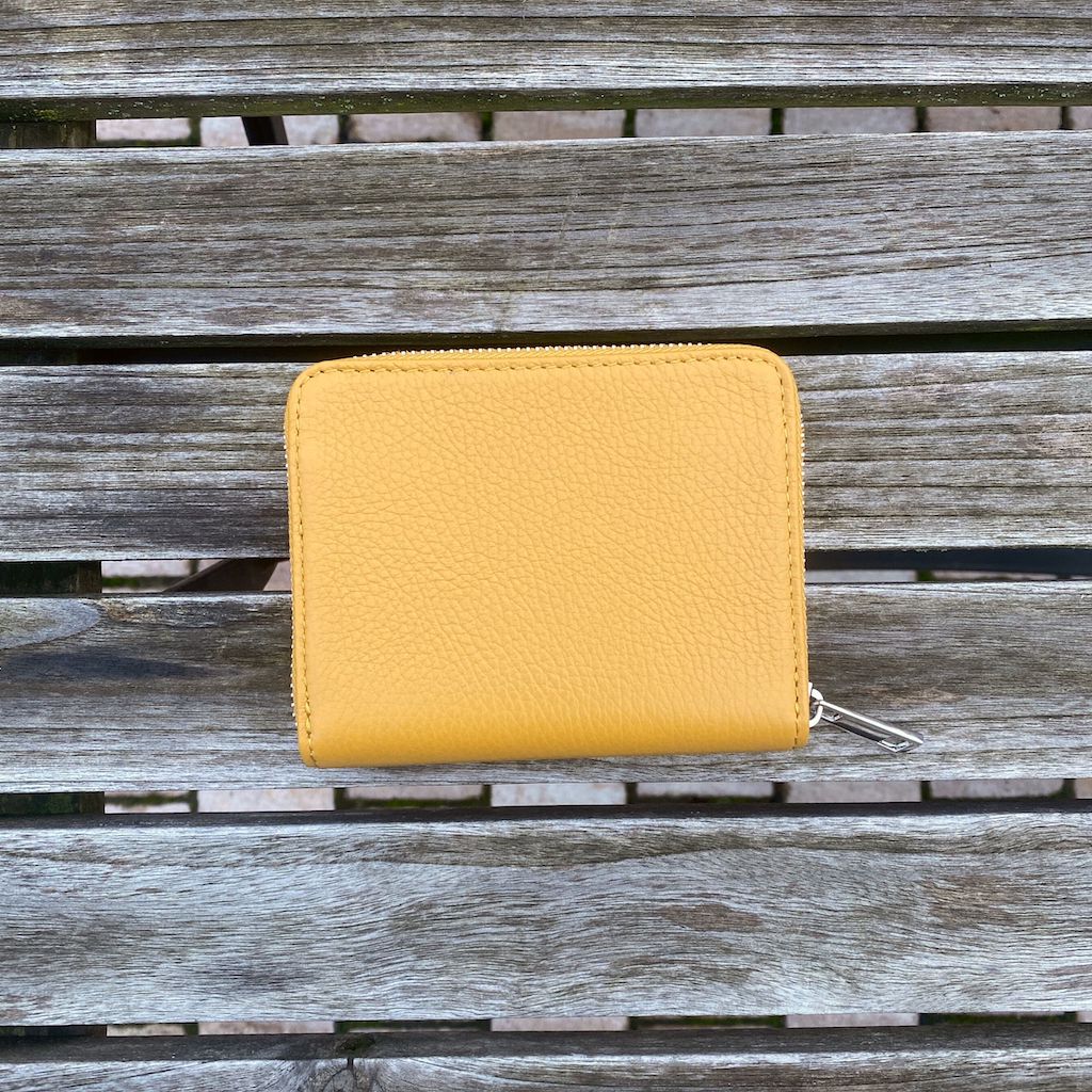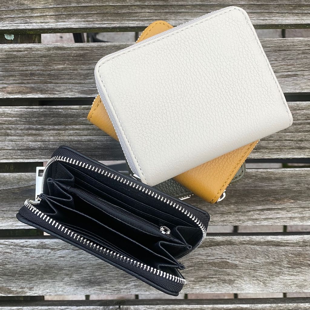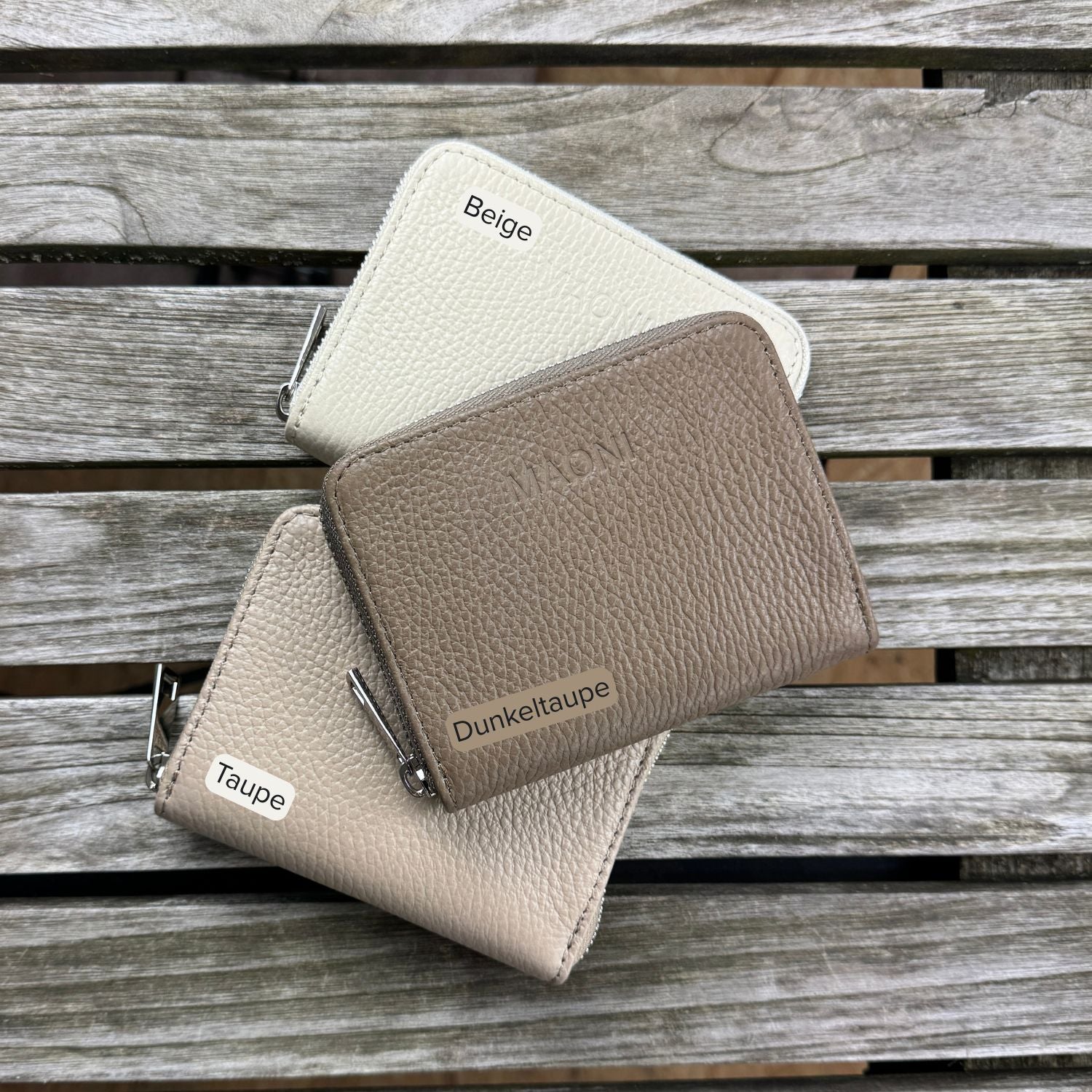 La livraison comprend un petit porte-monnaie en cuir. Le porte-monnaie dispose de 4 porte-cartes et d'une petite poche pour les pièces de monnaie et convient particulièrement bien aux petits sacs à main.