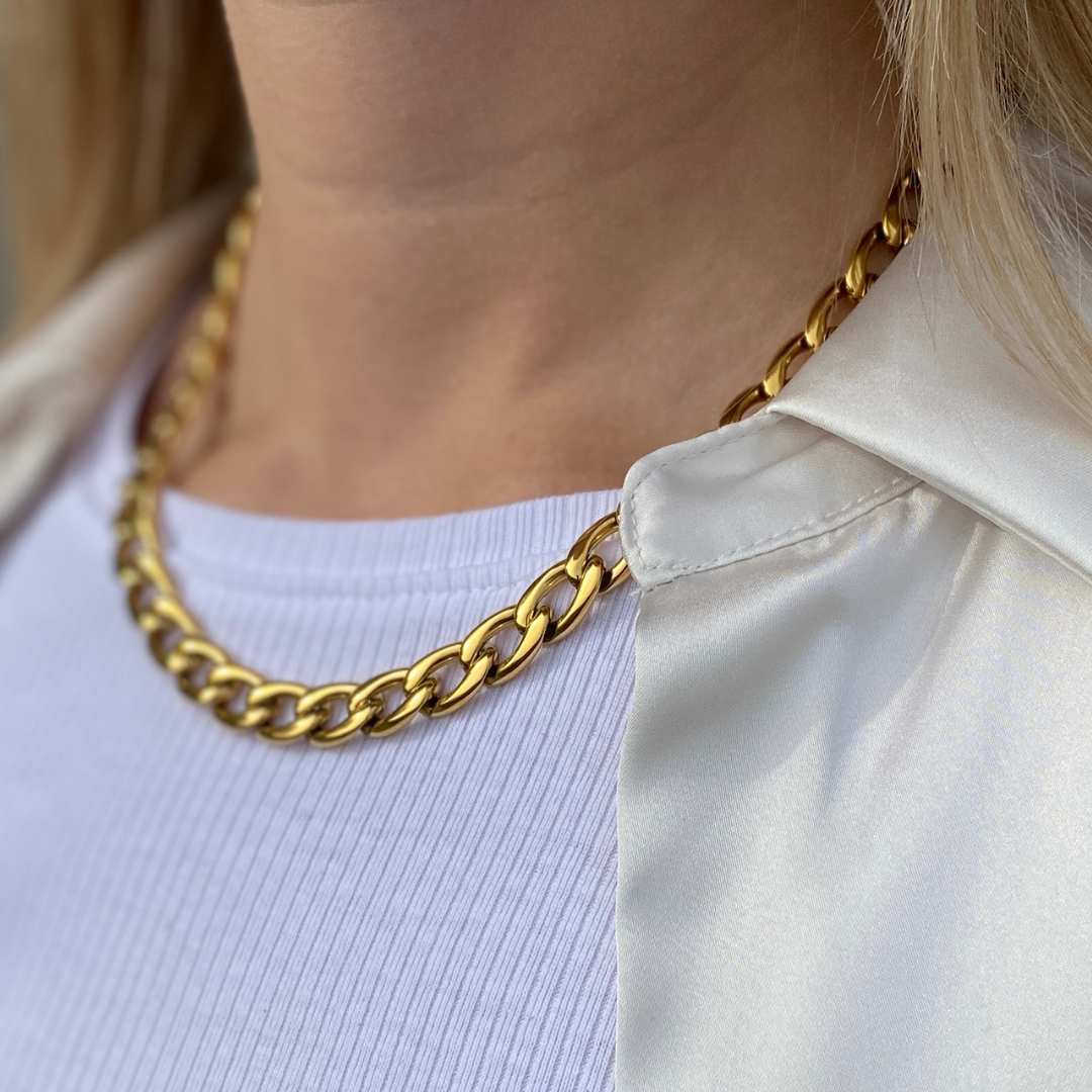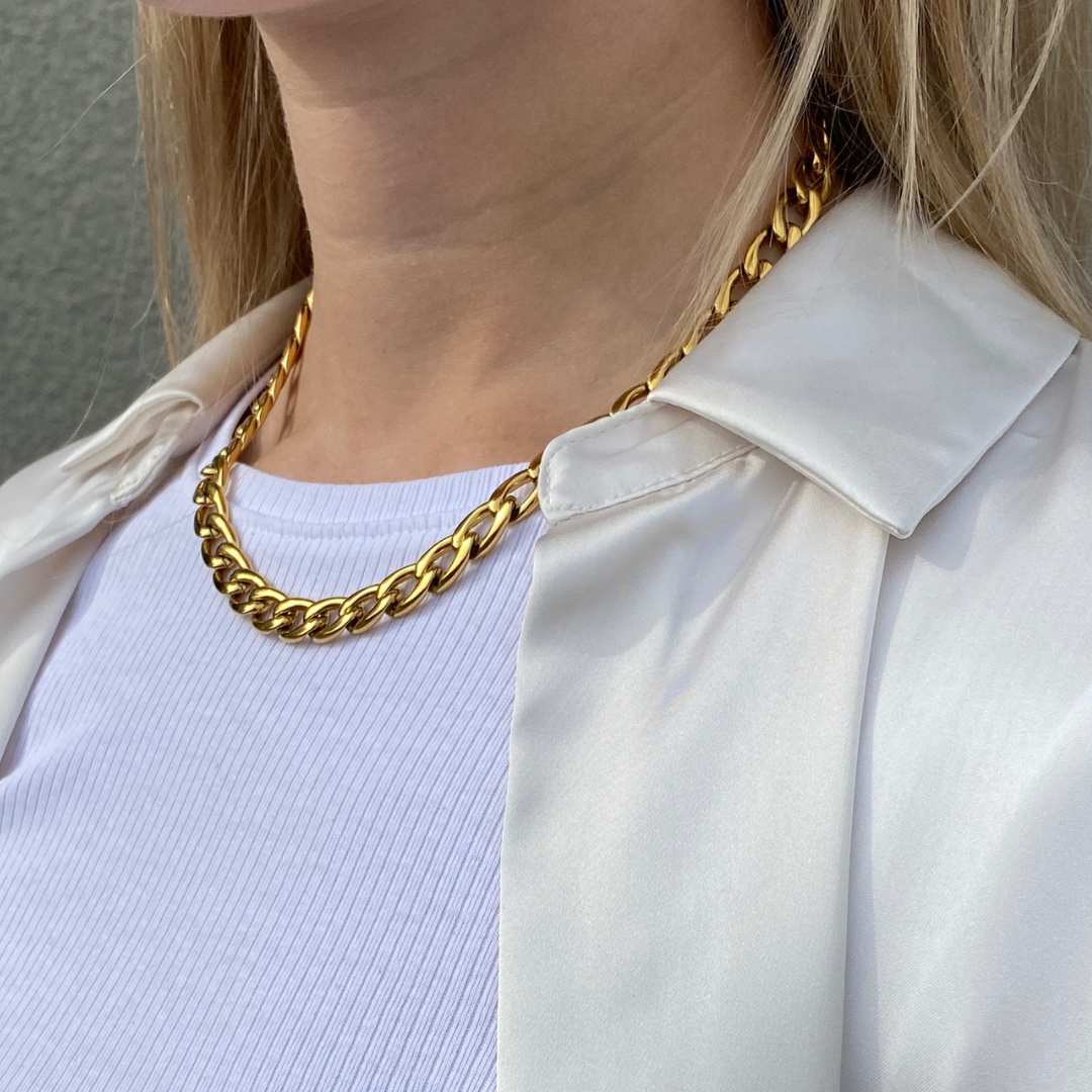 La chaîne est fabriquée en acier inoxydable doré de qualité 18 carats. L'acier inoxydable doré permet à ta nouvelle chaîne de conserver son éclat et sa beauté.