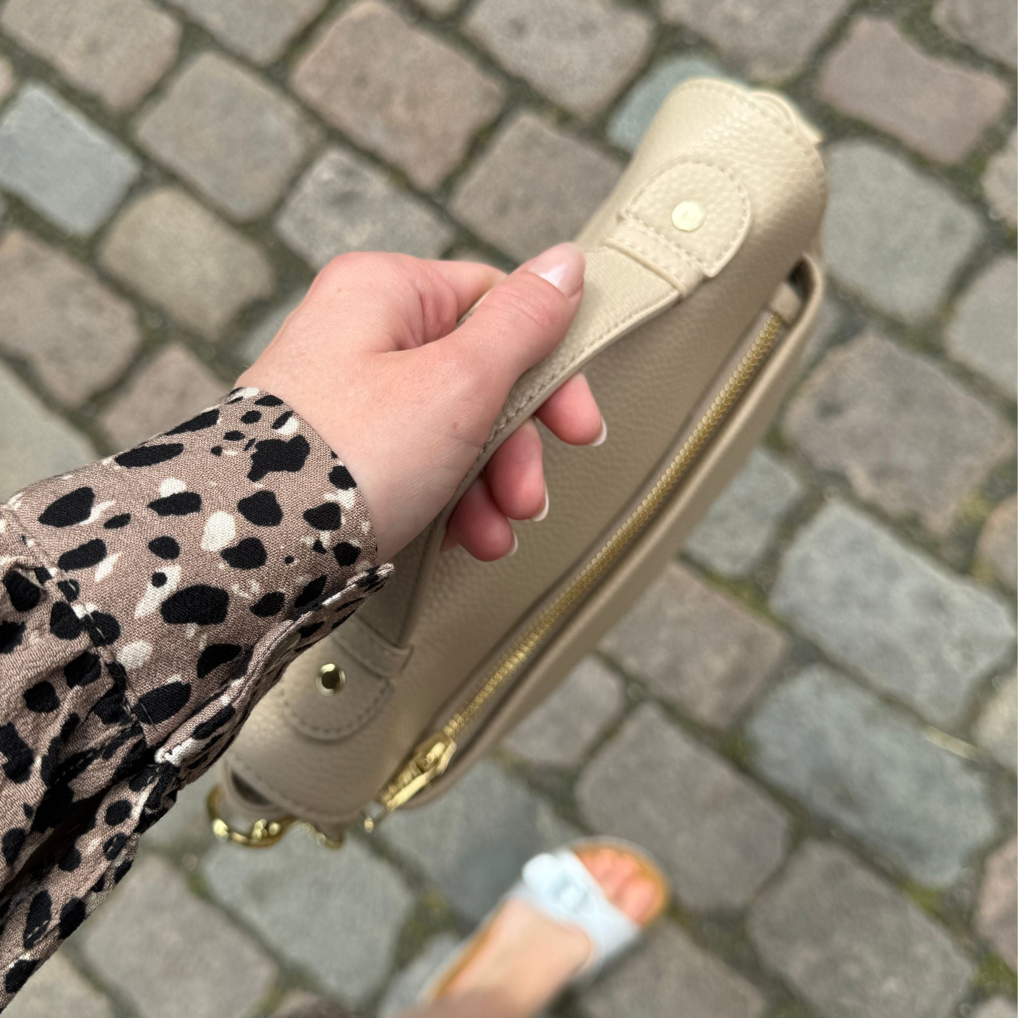 Umhängetasche + schmaler Taschengurt aus Kunstleder mit goldfarbener Hardware