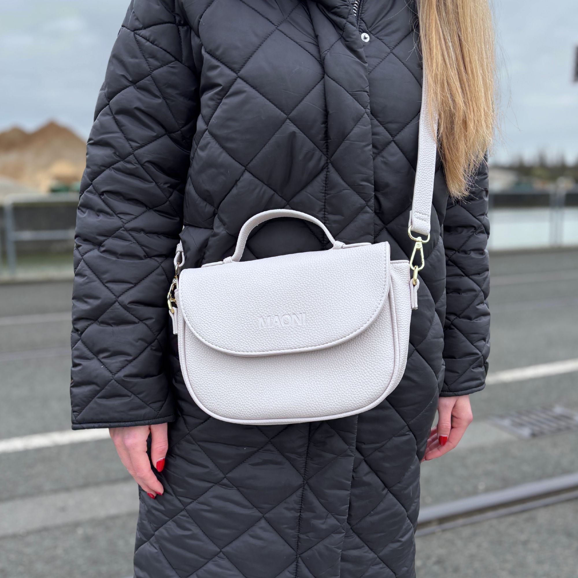 Unsere Halfmoon Bag besteht aus hochqualitativem Kunstleder und ist in drei verschiedenen Farben erhältlich. Im Lieferumfang enthalten ist die Umhängetasche mit einem schmalen Kunstleder-Gurt. Die Verschlüsse sind goldfarben.