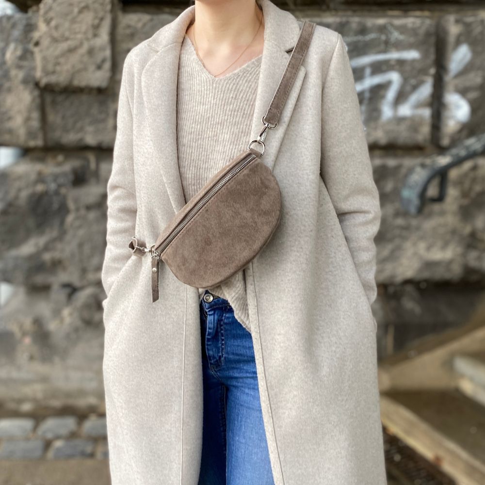 3x kleine Bauchtasche aus Wildleder mit schmalem Ledergurt