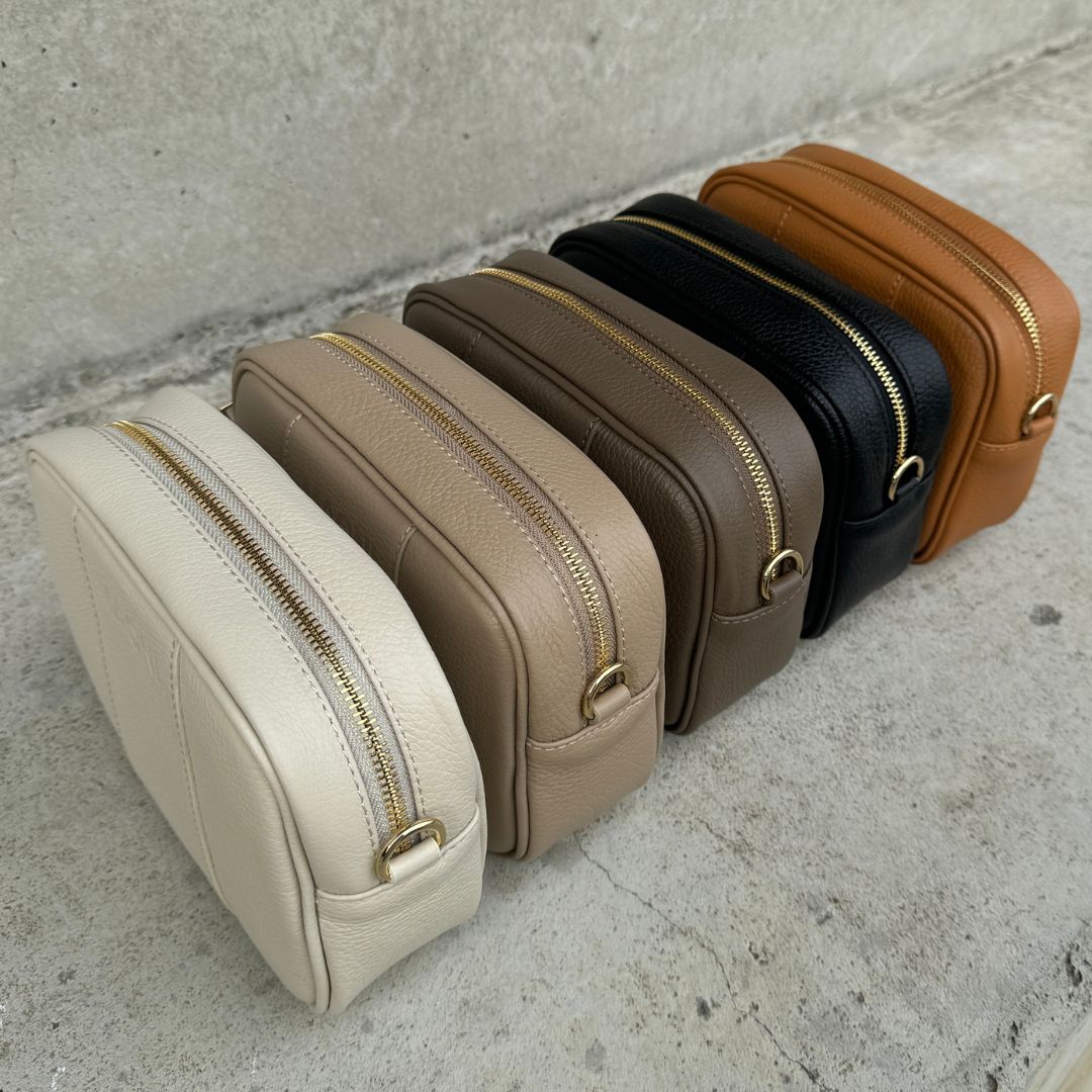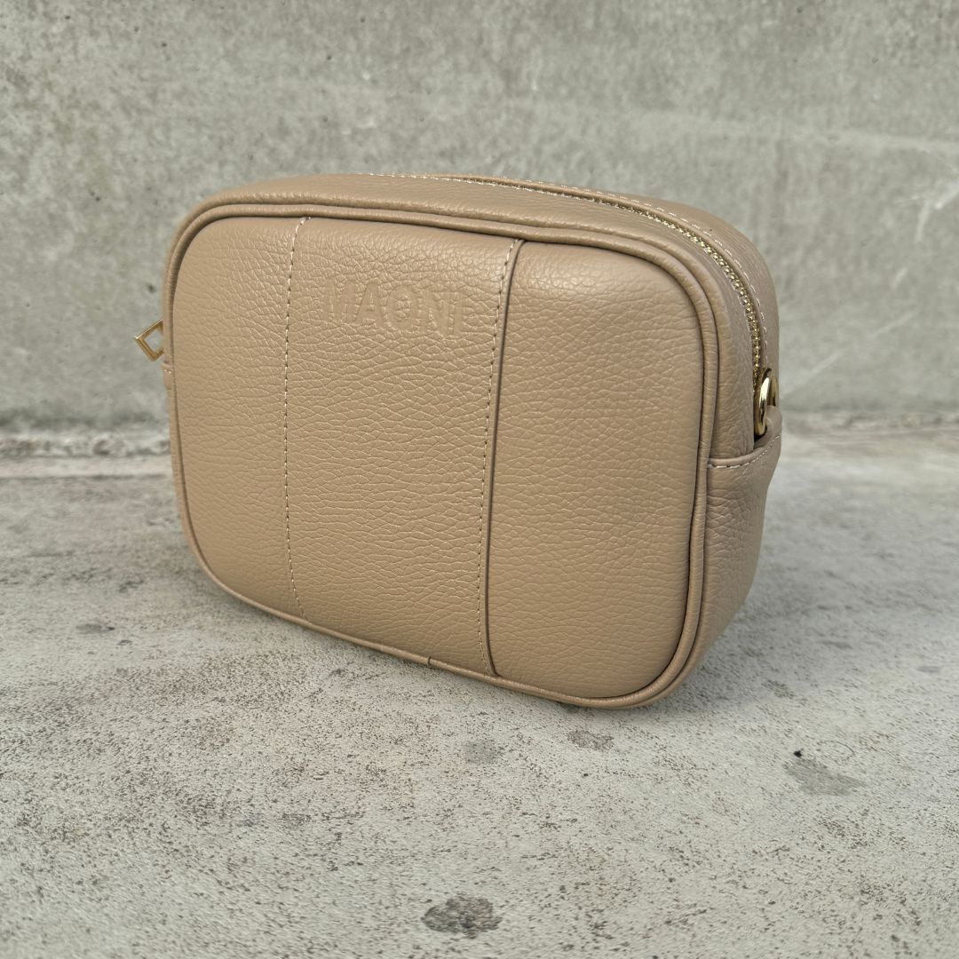 Umhängetasche + schmaler Taschengurt aus Echtleder mit goldfarbener Hardware