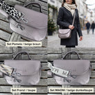 Bitte beachte, dass das Model 1,60 m groß ist - je nach Körpergröße kann die Tasche optisch größer oder kleiner wirken. Leichte Farbabweichungen können aufgrund von Lichtverhältnissen und individuellen Bildschirmeinstellungen auftreten.