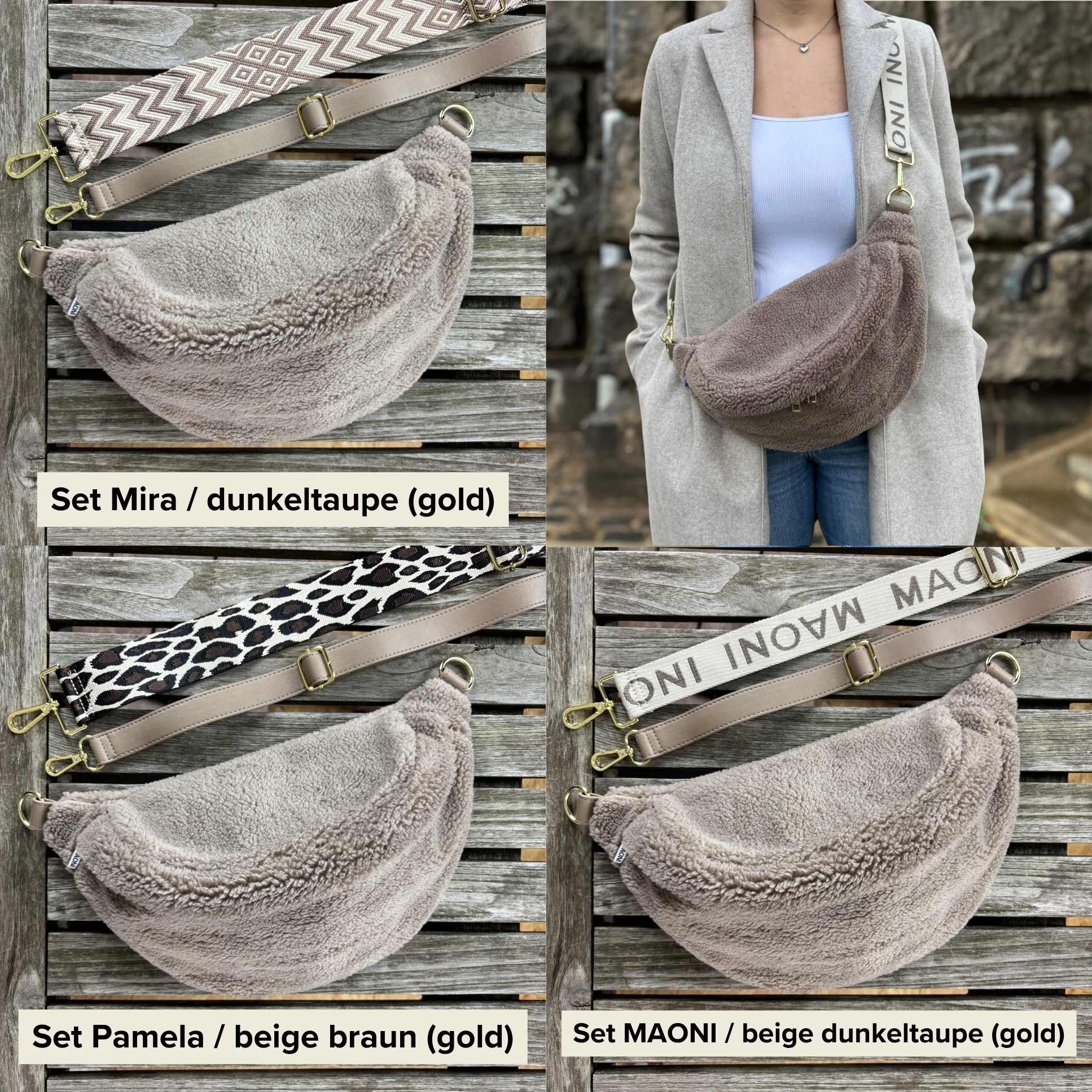 Choisissez une large bandoulière assortie à votre nouveau sac ventral et bénéficiez de 50% de réduction sur la bandoulière. La réduction est automatiquement déduite dans le panier d'achat. Sur les photos d'exemple, vous pouvez voir notre bandoulière de sac Fiona et Pamela.